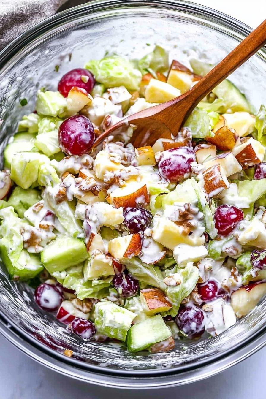 - Greek Pasta Salad – tangy dressing and crisp veggies complement the Waldorf.