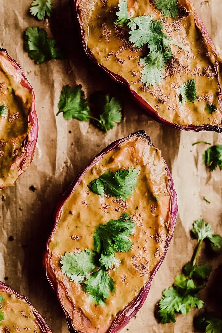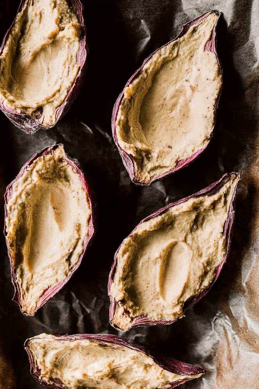 Baked Japanese Sweet Potatoes with Miso Tahini Butter