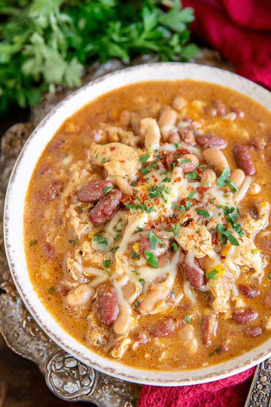- Slow Cooker White Chicken Chili – another creamy chili option featuring white beans