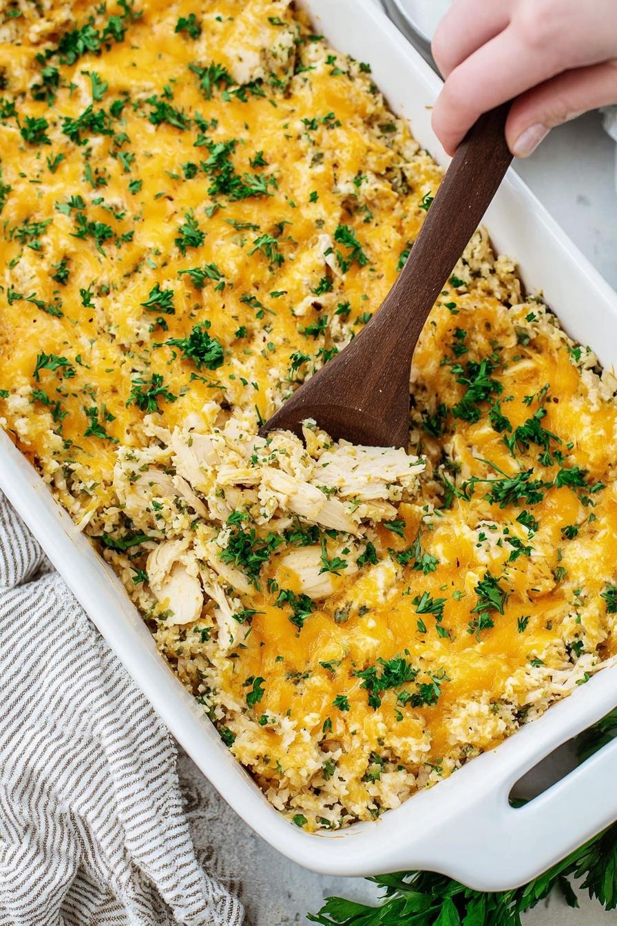 There’s something heartwarming about a Cheesy Chicken, Rice and Cauliflower Rice Casserole. As the cheese melts and the aroma fills the kitchen, it invites family and friends to gather around the table. I tested this recipe multiple times, adjusting flavors and textures until it met that comforting spot we all crave. Whether on a busy weeknight or a cozy weekend, this dish delivers satisfaction every time. If you’re also a fan of comforting casseroles, you might enjoy my One-Pot Chicken and Rice Soup!
