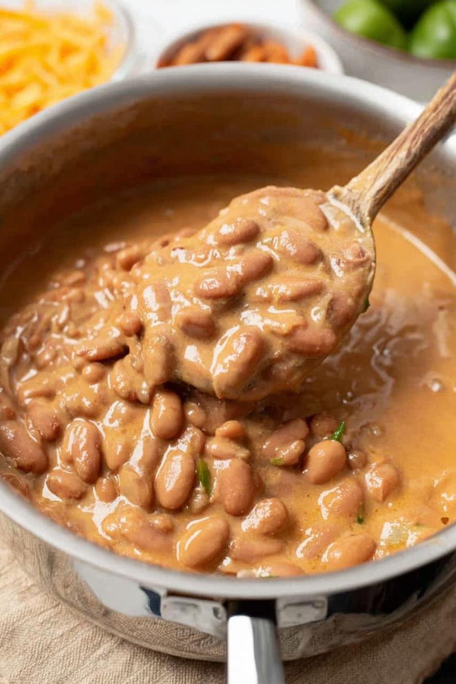 Store Cheesy Pinto Beans in the fridge for up to 4 days in an airtight container. They also freeze beautifully for up to 3 months—just thaw overnight and reheat gently on the stove. After multiple tests, I found that the flavors deepen after a day in the fridge.