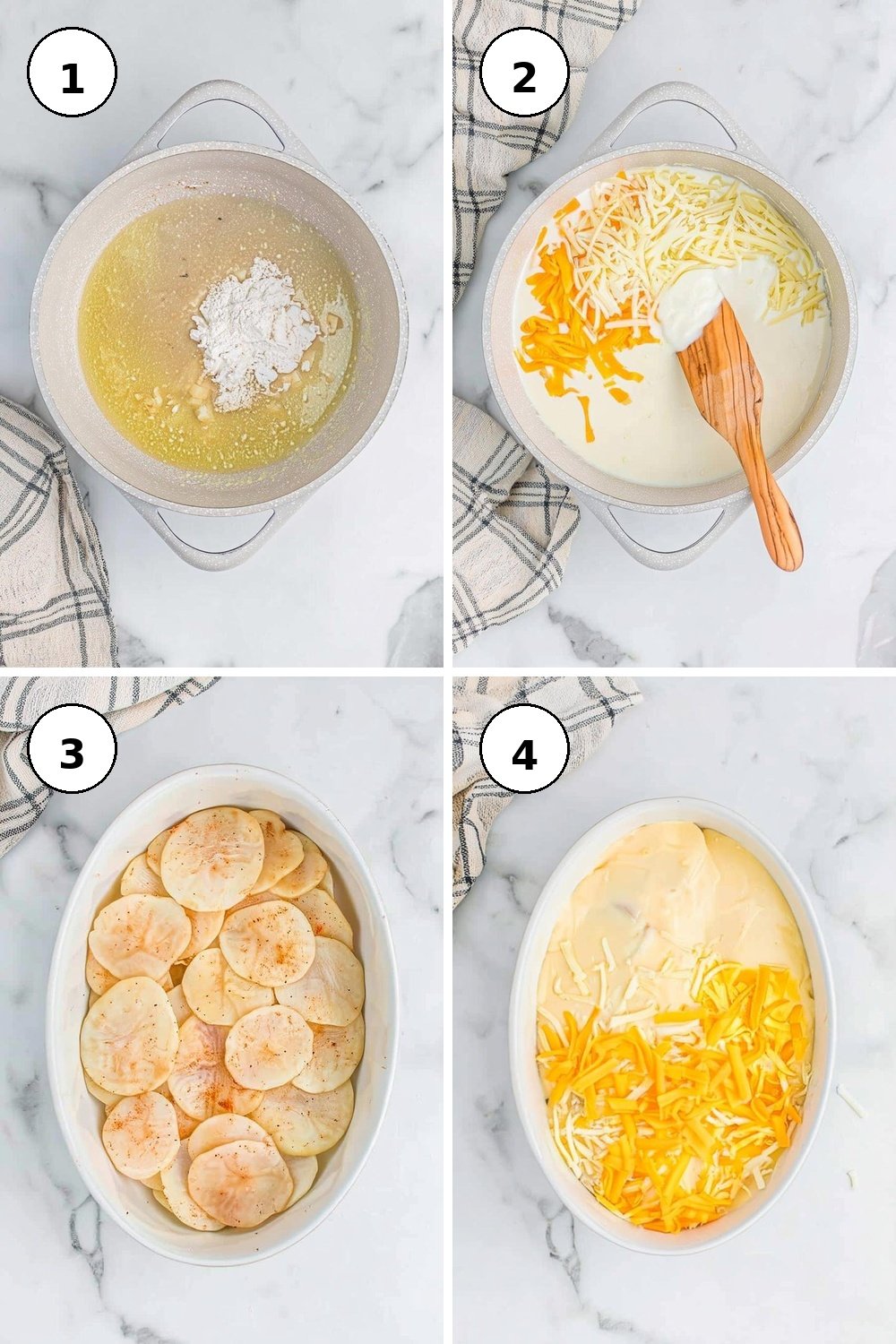 - Wash and slice the potatoes thinly, then dry them thoroughly; this prevents excess moisture that could dilute the sauce.