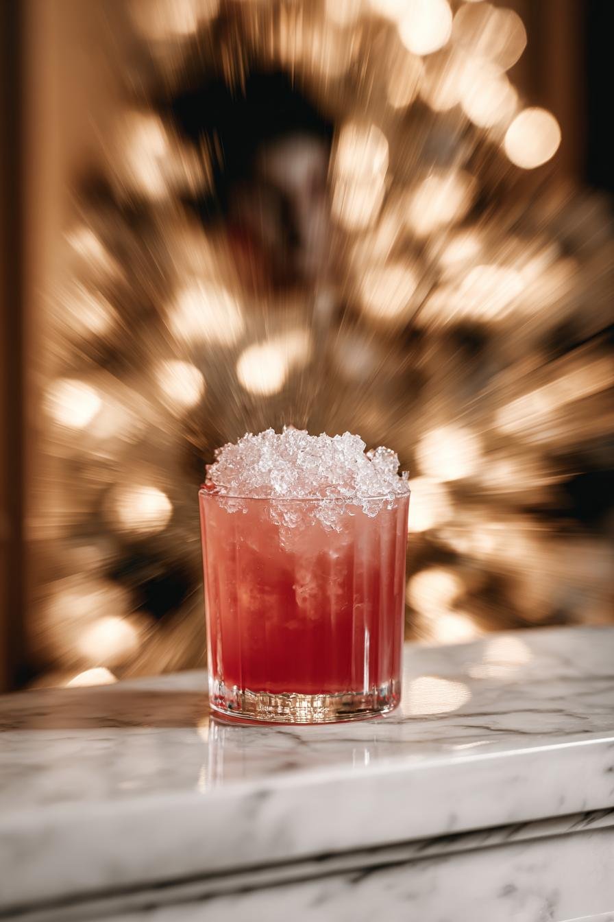 3. Strain the mixture into a chilled highball glass packed with fresh ice, watching the ruby liquid swirl around the cubes.