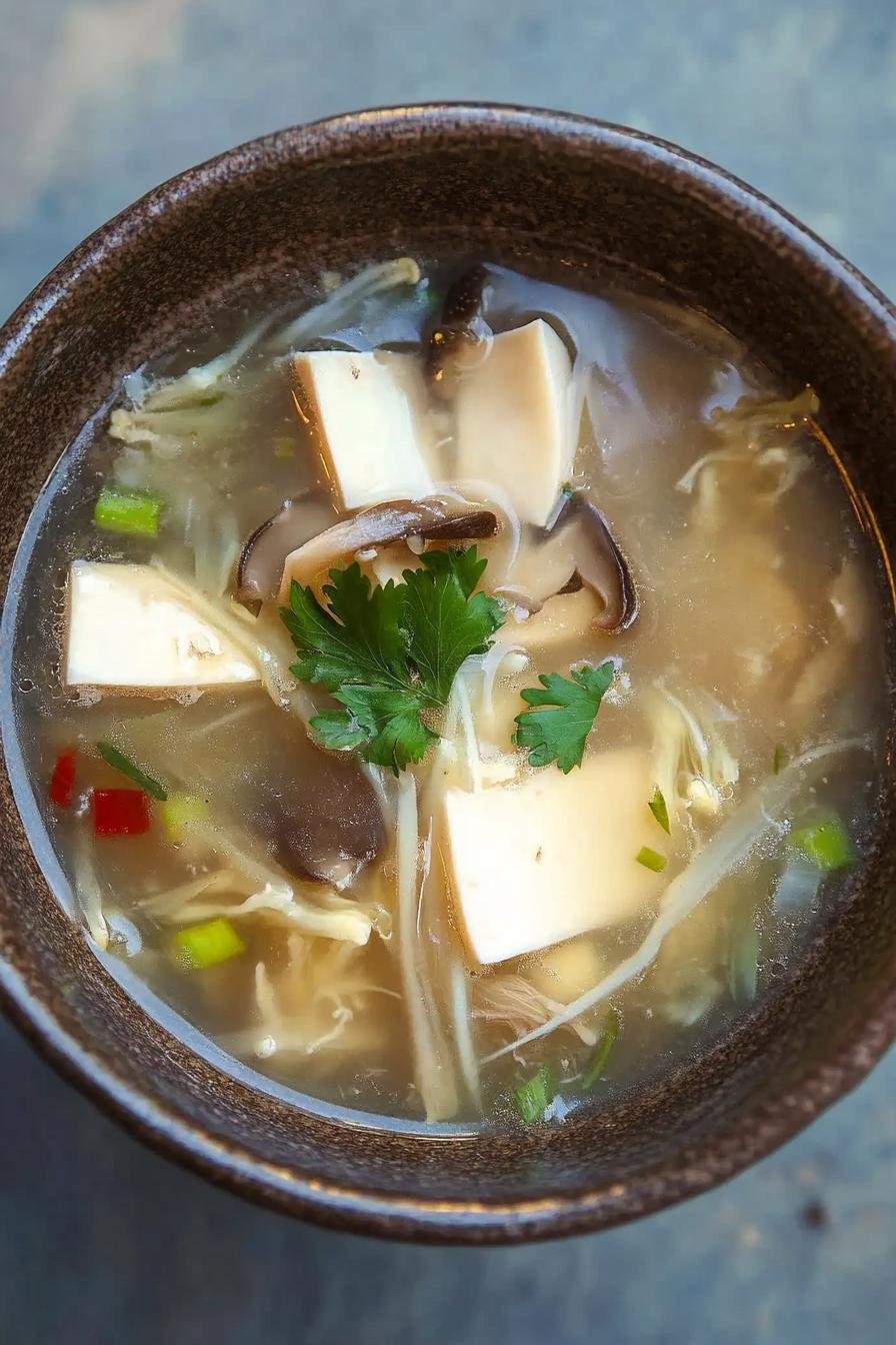 Cool completely before storing to prevent bacterial growth. Refrigerate in an airtight container for up to 3 days; reheat gently over low heat to preserve texture (egg ribbons may break down if boiled). Freeze for up to 2 months—thaw overnight in the fridge. Food safety: always reheat to 165°F (74°C) before serving. Testing note: I found the soup’s clarity returns when gently reheated, and omitting egg ribbons for storage keeps the broth smooth.
