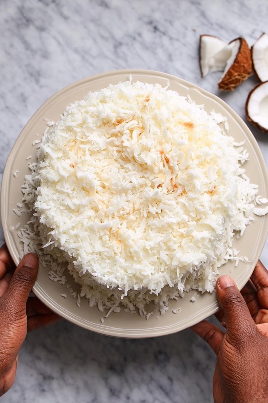 - Decorate with additional shredded coconut pressed into the frosting for an inviting look.