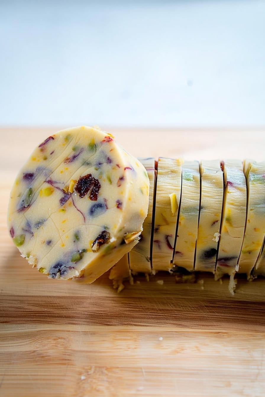 - Form the dough into a log shape on parchment or cling wrap, tightly rolling it up to chill in the fridge for at least an hour before slicing into rounds.