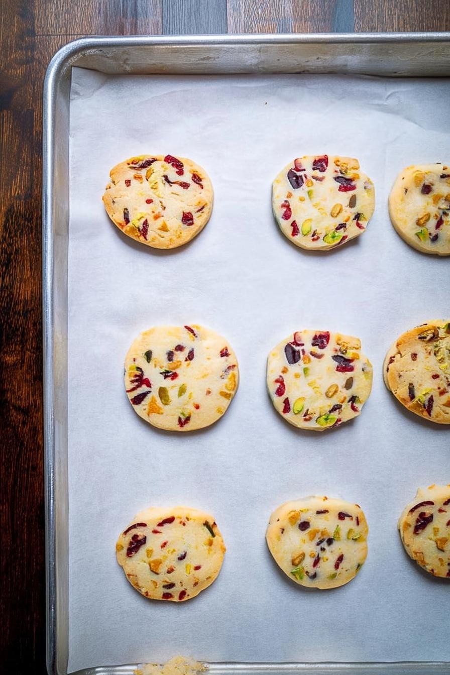 - Fold in the cranberries and pistachios, appreciating the vibrant colors that add visual appeal and texture.