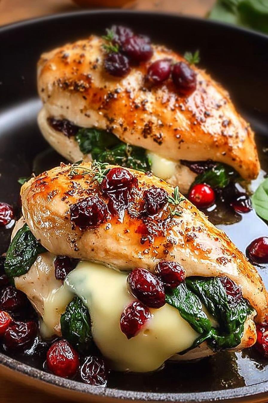 After countless runs through my oven and skillet, Cranberry & Spinach Stuffed Chicken Breasts with Brie remains one of my go-to dishes for both weeknight dinners and festive gatherings. The contrast of silky cheese, tender chicken, and bright berries is a combination I never tire of. Give it a try, then drop a comment with your own tweaks—I can’t wait to hear how it turns out in your kitchen!