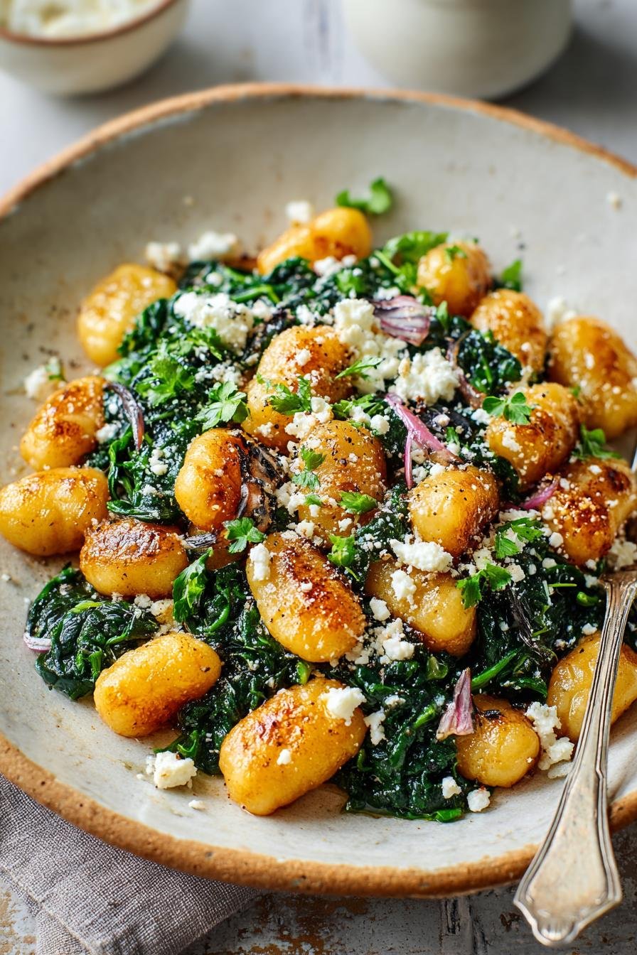 Crispy Gnocchi With Spinach And Feta