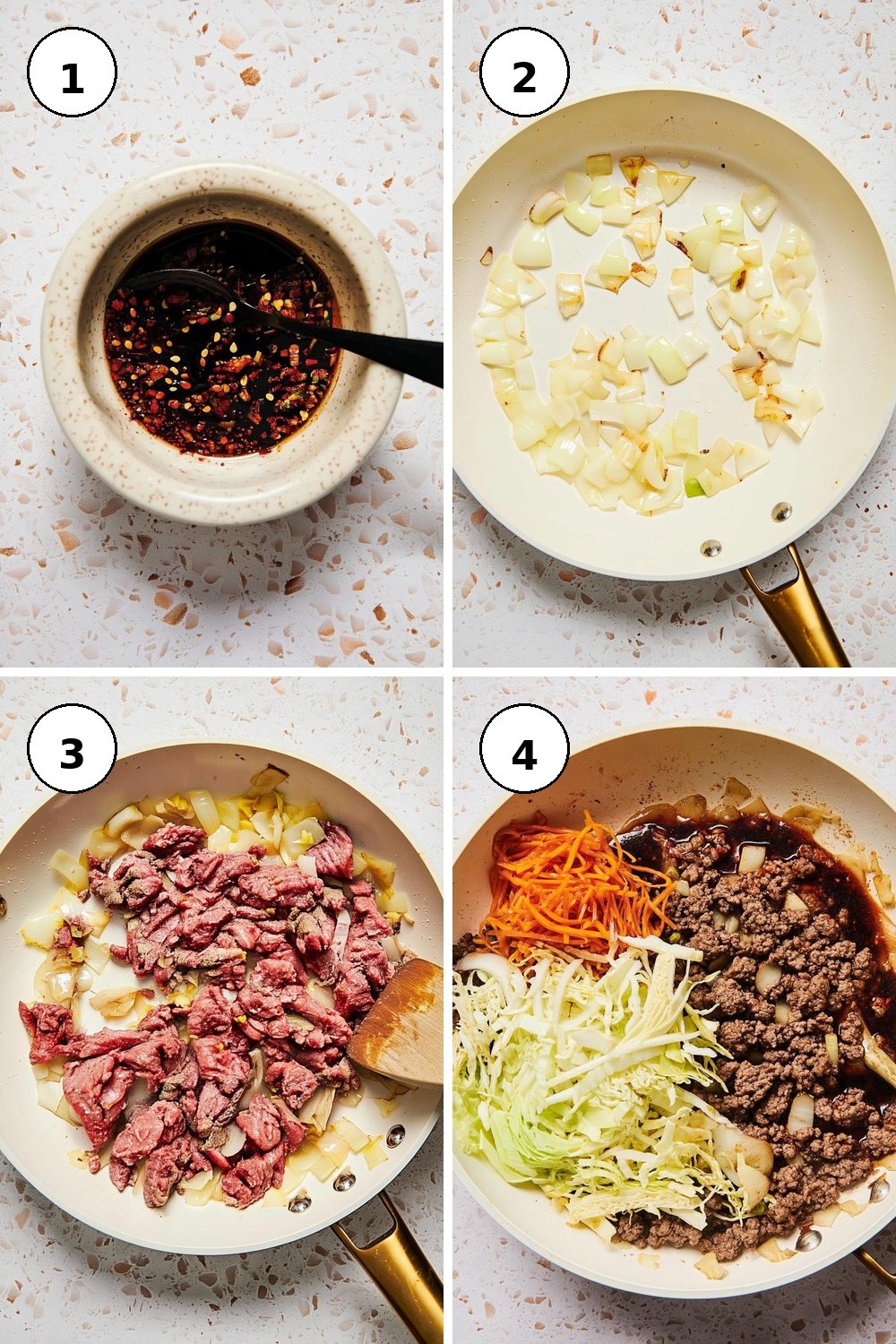 - When cooking the beef, break it apart with a wooden spoon for a better texture; keep an eye on it to avoid overcrowding in the pan.