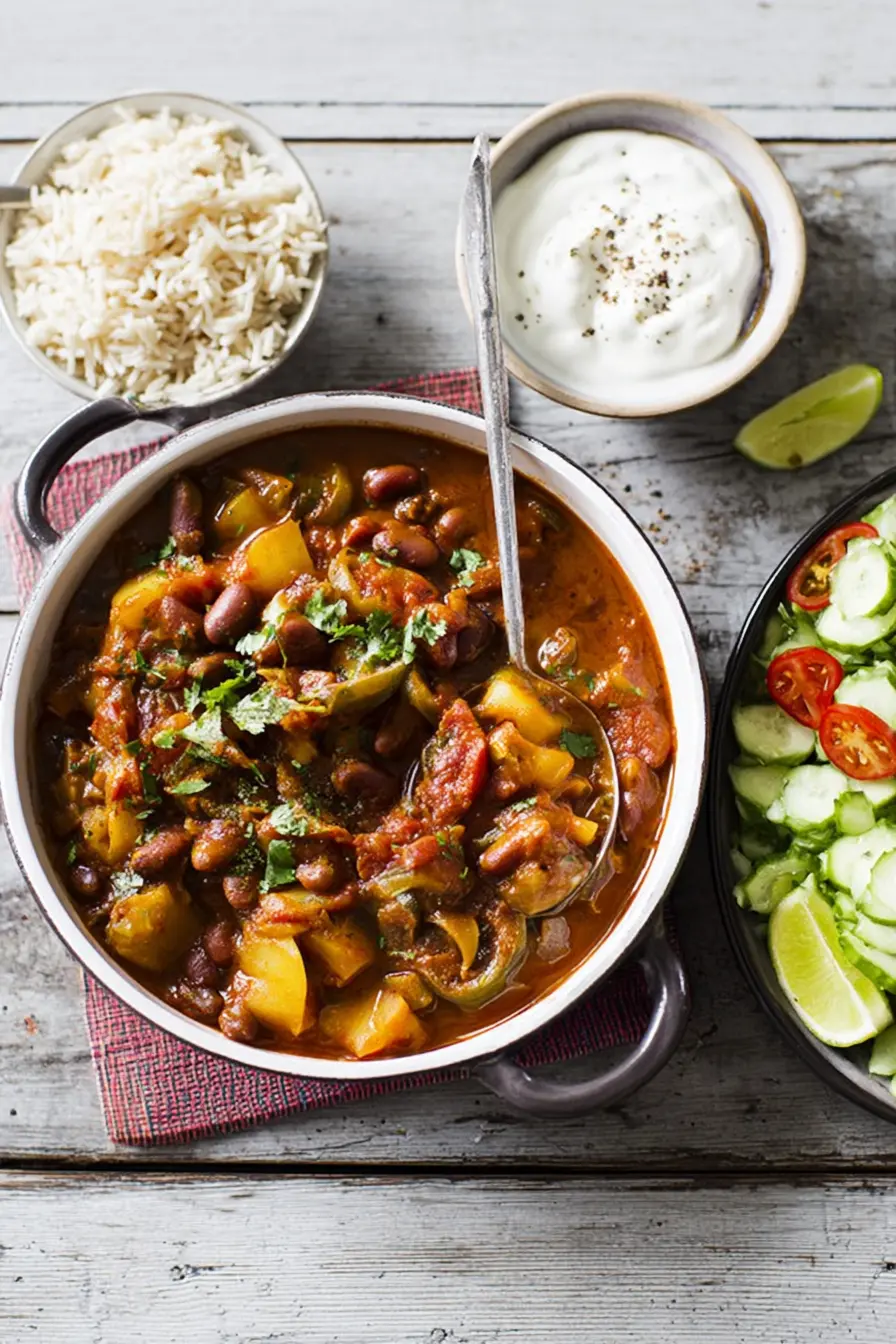 - Pour in the canned beans with their liquid, diced tomatoes, and spices. Simmer for 20 minutes until thickened.