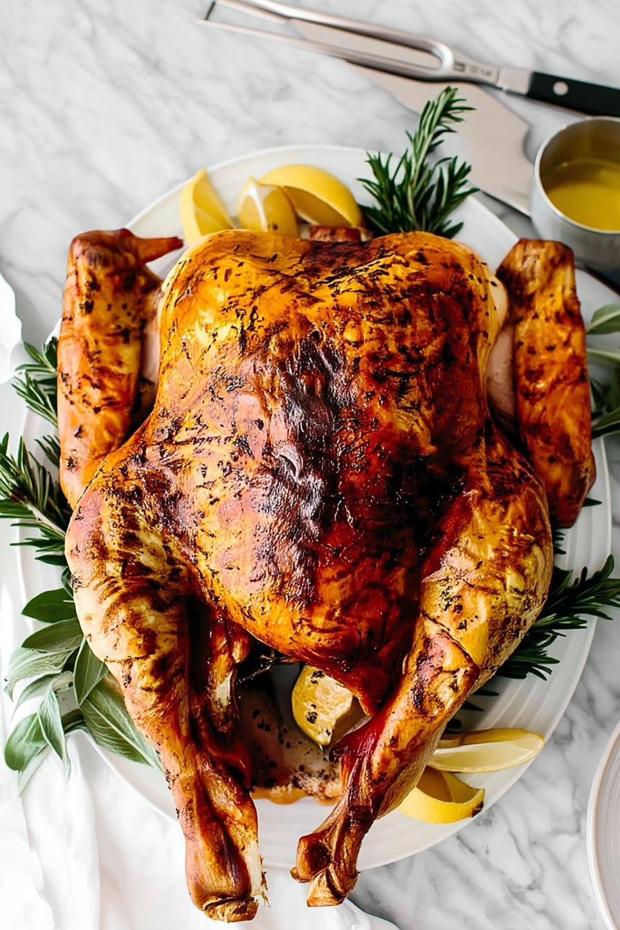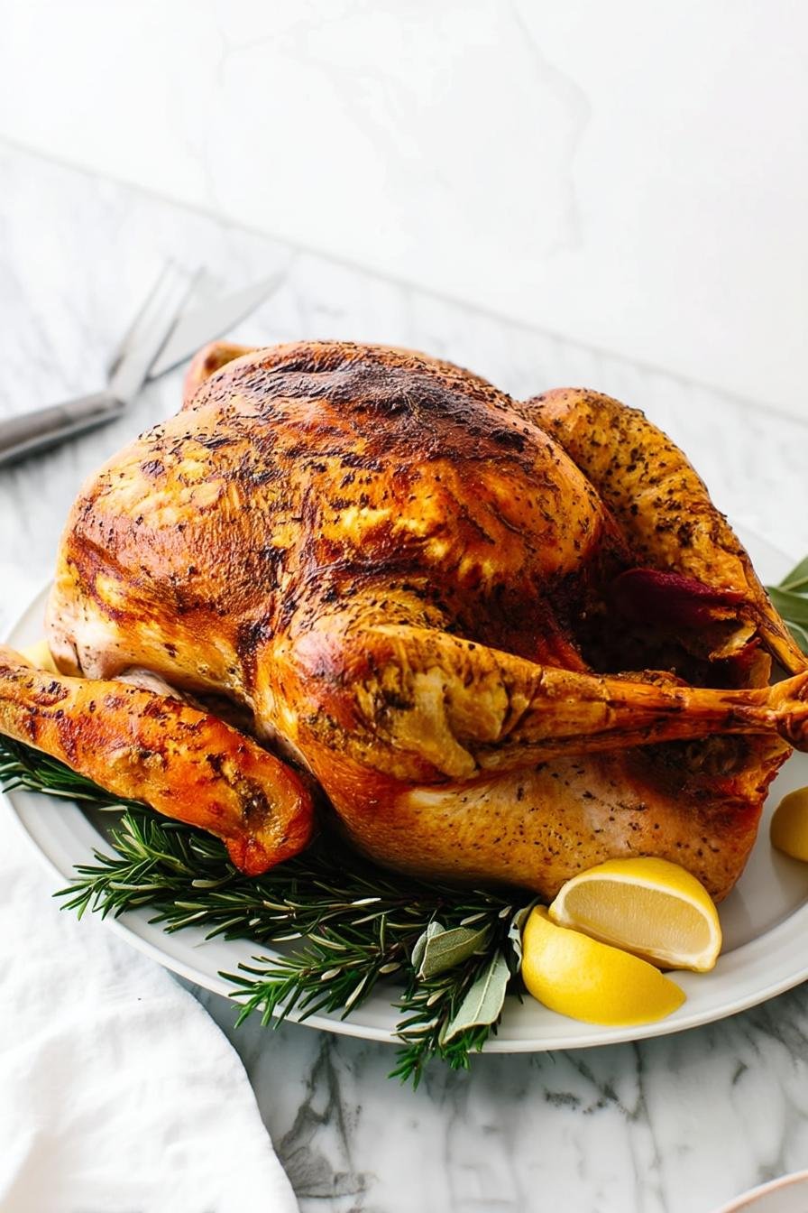 - Can I brine this turkey the night before? Yes—add a simple salt‐water brine up to 12 hours ahead, but reduce salt in the rub to prevent oversalting.