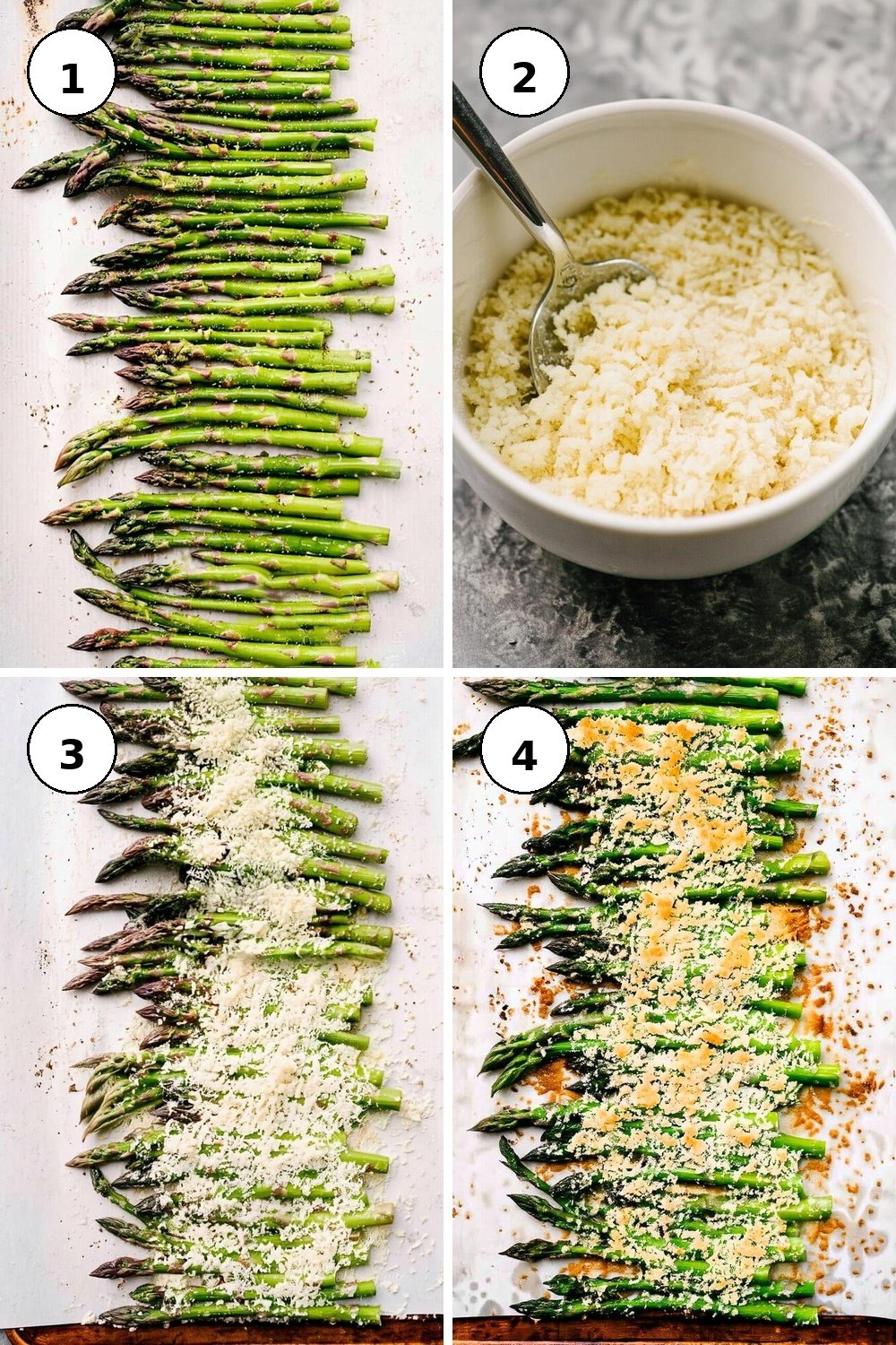 - Sprinkle the parmesan and panko mixture evenly over the asparagus.
