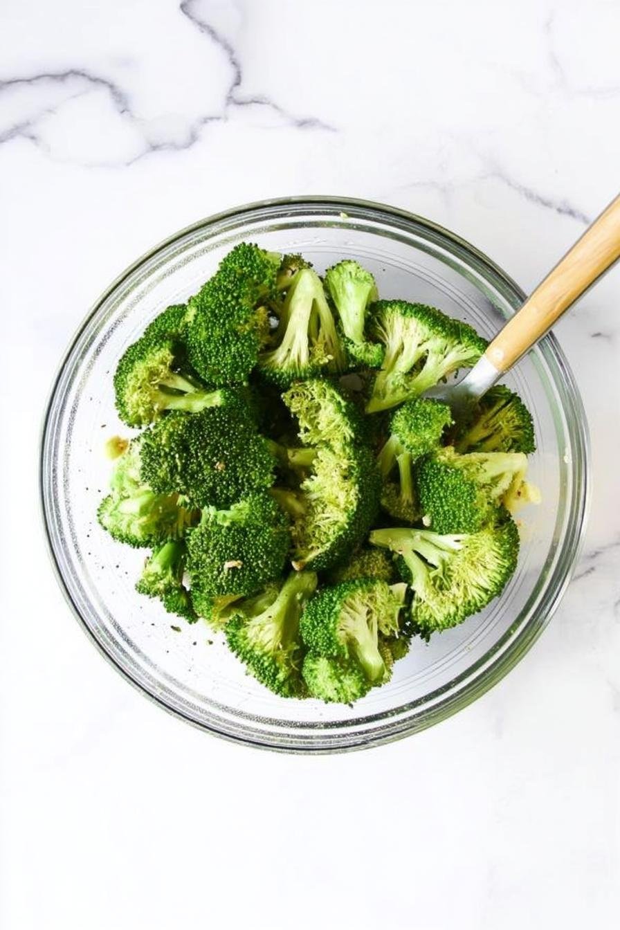 - Trim the broccoli into about 2-inch florets, making sure to keep a bit of the stem for added crunch. In a large bowl, whisk together olive oil, minced garlic, salt, pepper, and sugar.