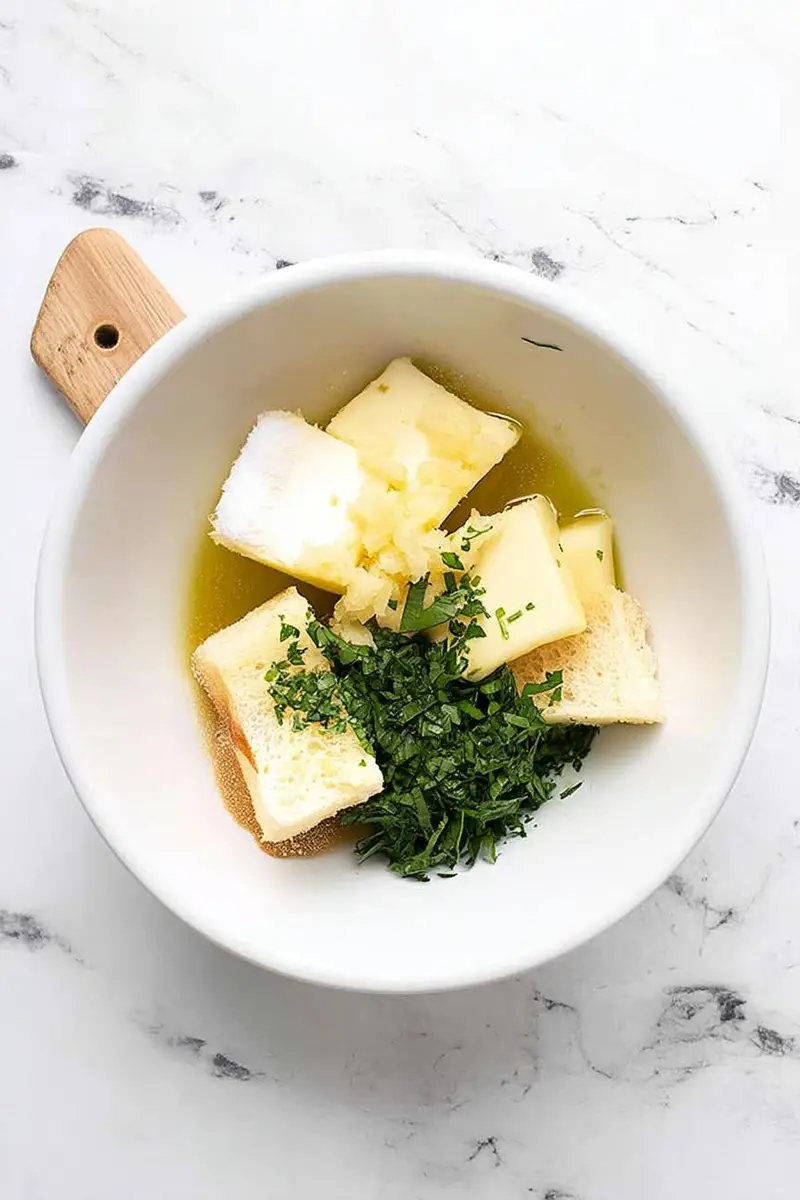 - Preheat your oven to 400°F. In a mixing bowl, blend together the soft butter, olive oil, minced garlic, garlic powder, chopped parsley, and salt. You want it smooth, but a few small butter lumps add texture.
