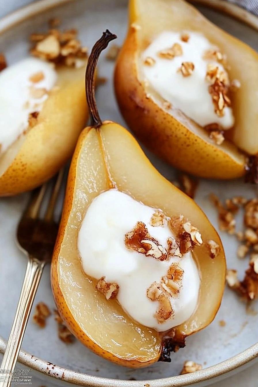 Serve warm with a scoop of vanilla ice cream, a dollop of Greek yogurt, or a drizzle of heavy cream. For a brunch twist, pair these pears with ricotta toast or alongside oatmeal for a fragrant morning treat.