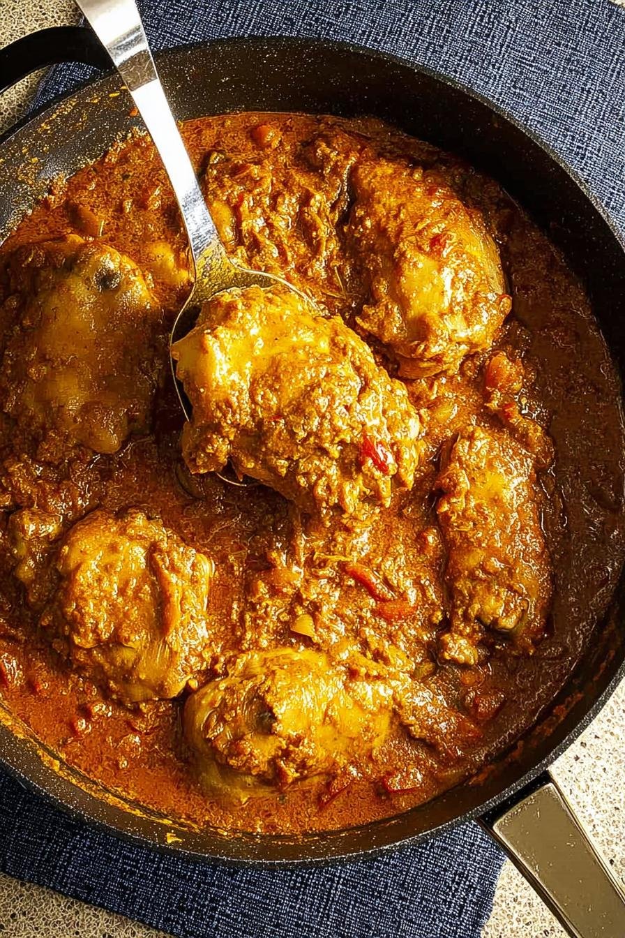 - Return the chicken to the pan and cover. Let it simmer for 20-25 minutes, or until the chicken reaches an internal temperature of 165°F (74°C), ensuring it’s tender and flavorful.
