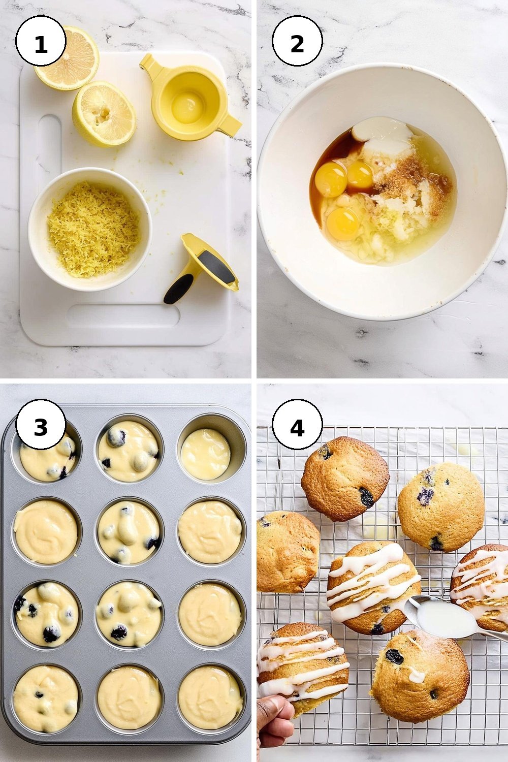 - While cooling, mix the glaze by combining powdered sugar, lemon juice, and zest. Drizzle over muffins once they’re completely cooled.