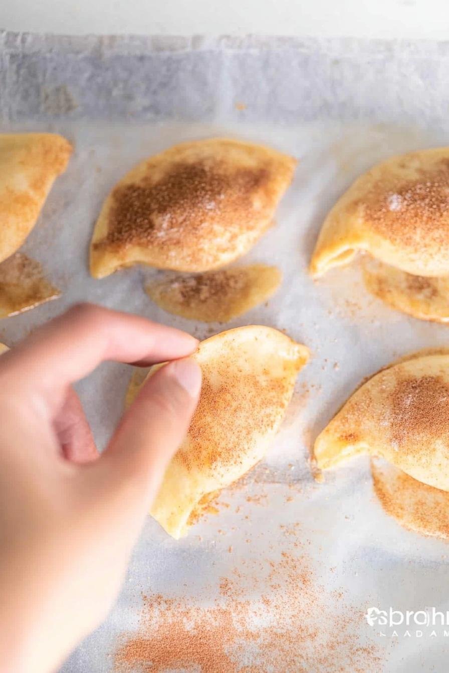 - Spoon 1–2 Tbsp filling onto each circle’s center. Brush edges with water, fold dough over to form a half-moon, and press edges with a fork to seal; you’ll hear a soft crackle as you crimp.