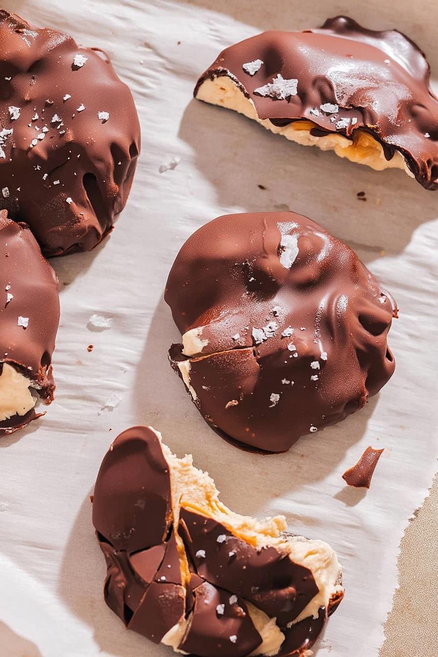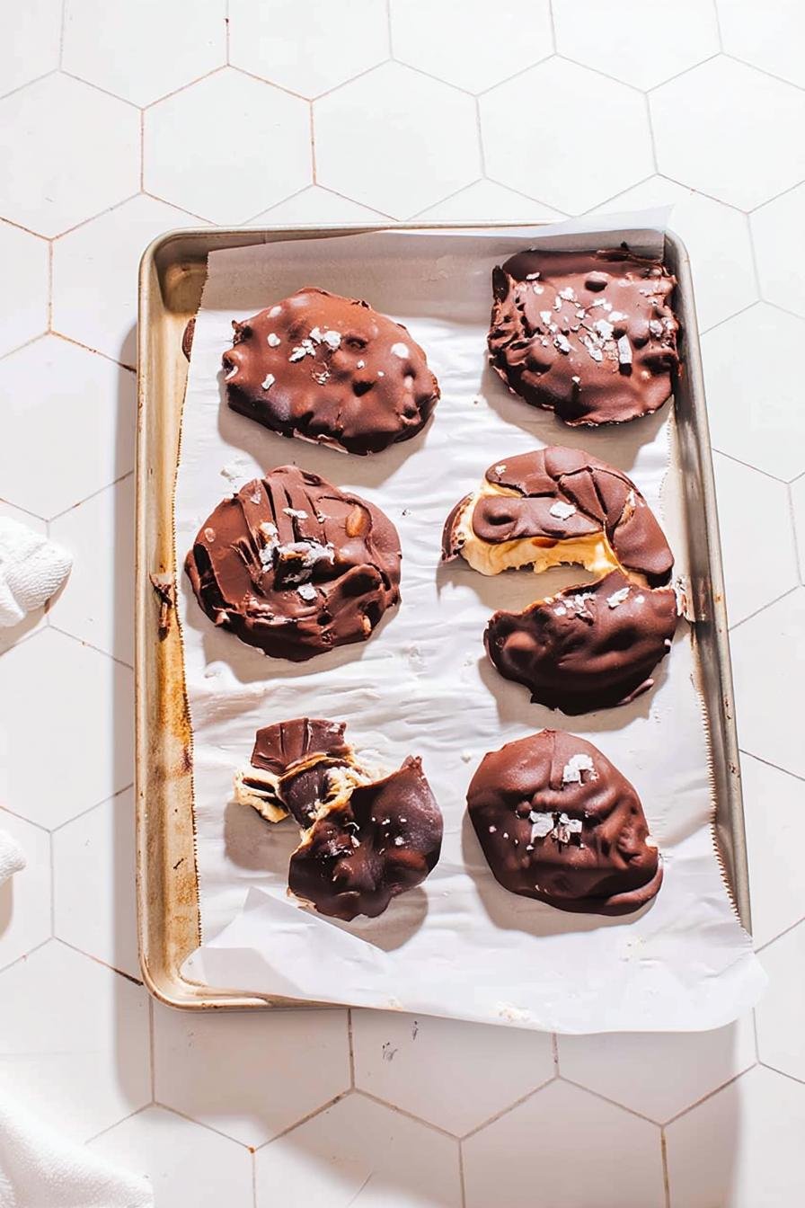 - Sprinkle 2 tablespoons of mini chocolate chips or chopped peanuts over each dollop, if using. Freeze for at least 2 hours, or until firm to the touch.