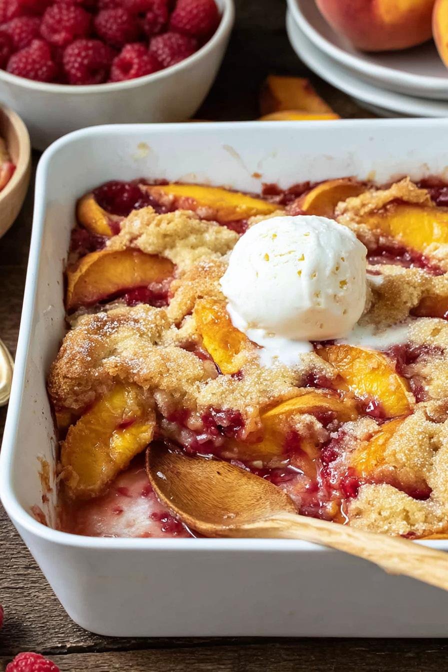 Raspberry Peach Cobbler truly celebrates the essence of summer! It’s a dish that evokes warmth and joy. I love serving it warm with a scoop of vanilla ice cream melting on top—just divine! I encourage you to try your hand at this recipe and share your results with me. I can’t wait to hear about your cobbler journey!