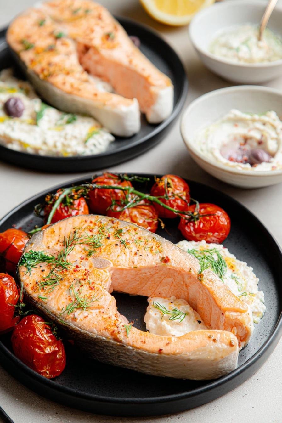 I hope you enjoy making Salmon Steaks with Spicy Whipped Feta as much as I do! It’s a meal that manages to impress with minimal effort. Don’t forget to share your kitchen successes with me!