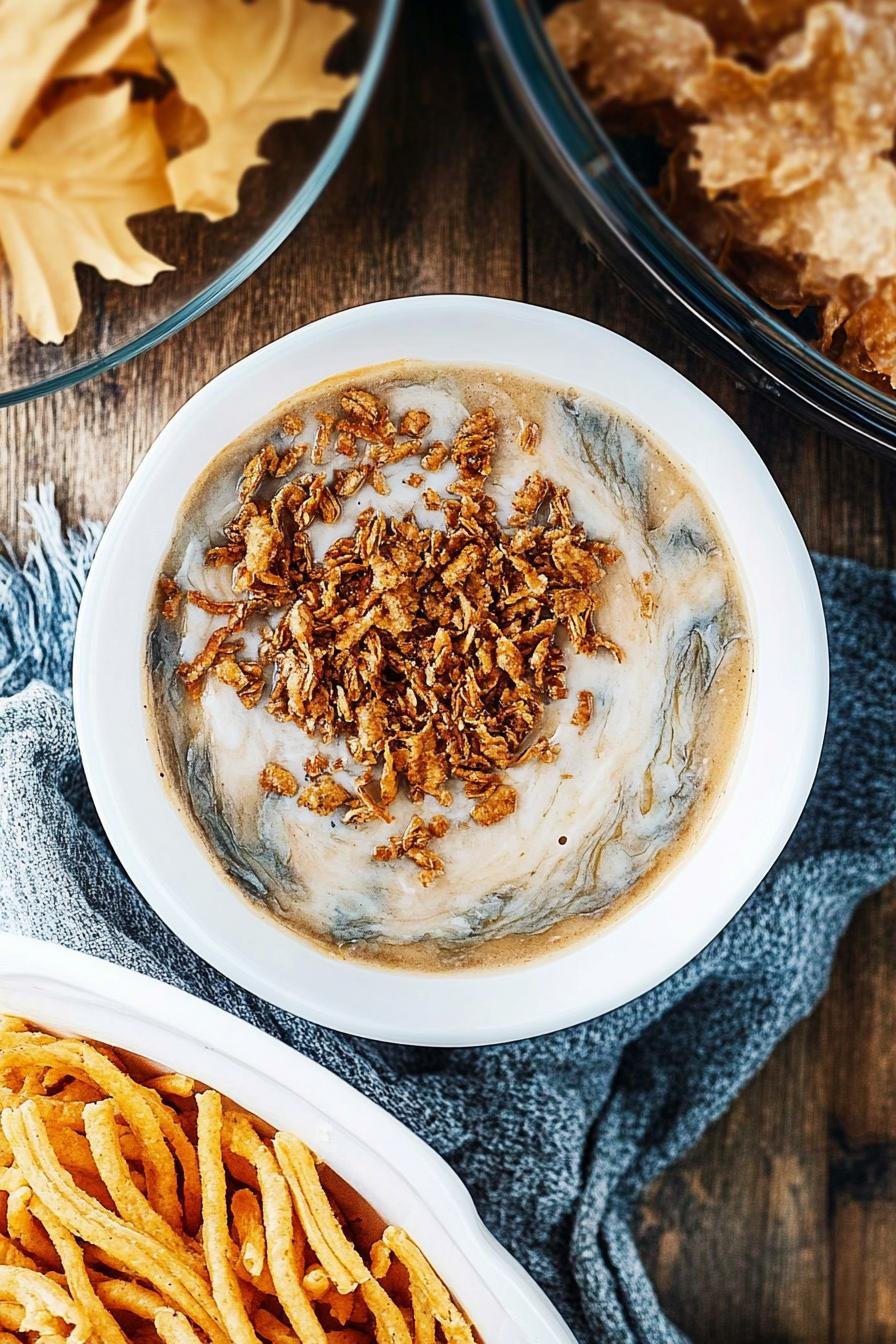 - How can I make this dairy-free? Swap butter for vegan margarine, use plant-based milk thickened with cornstarch, and ensure fried onions are vegan-friendly.