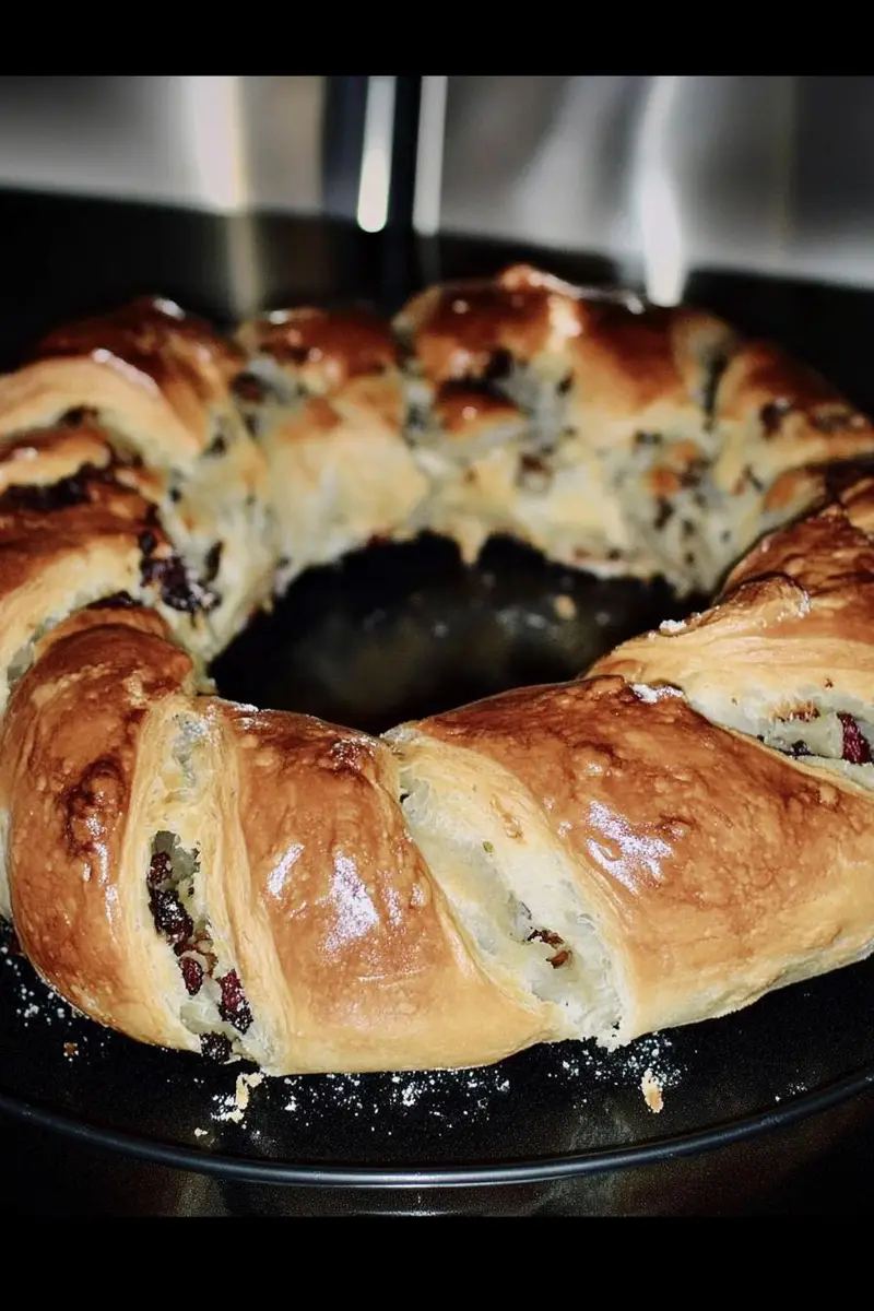- What’s the best way to reheat this wreath? Place slices on a baking sheet in a 325°F oven for 8–10 minutes to restore the flaky texture.