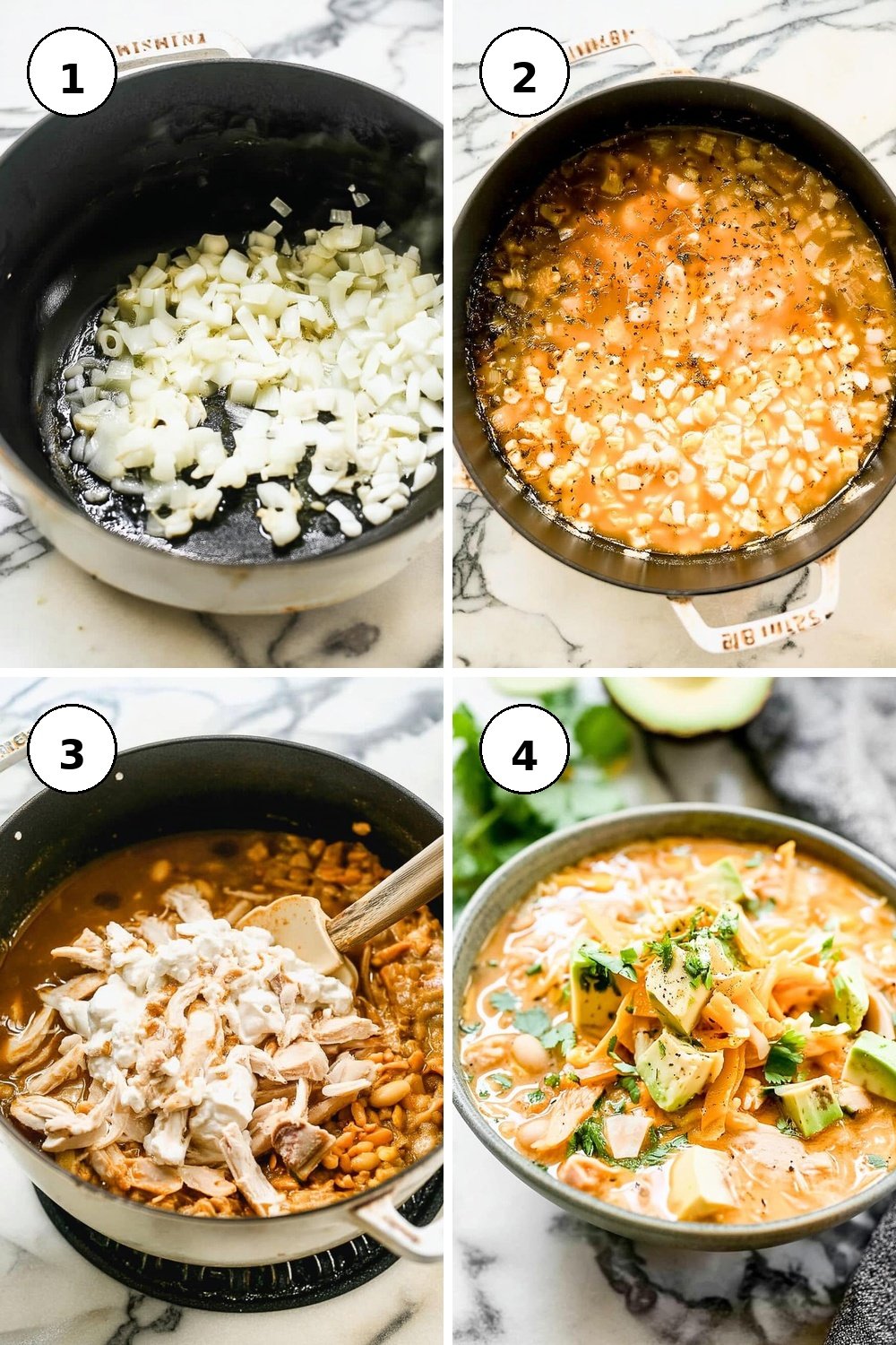 - In a large (5-6 quart) pot, heat olive oil over medium-high heat. Sauté the chopped onion for 3-5 minutes, letting it soften and fragrant.